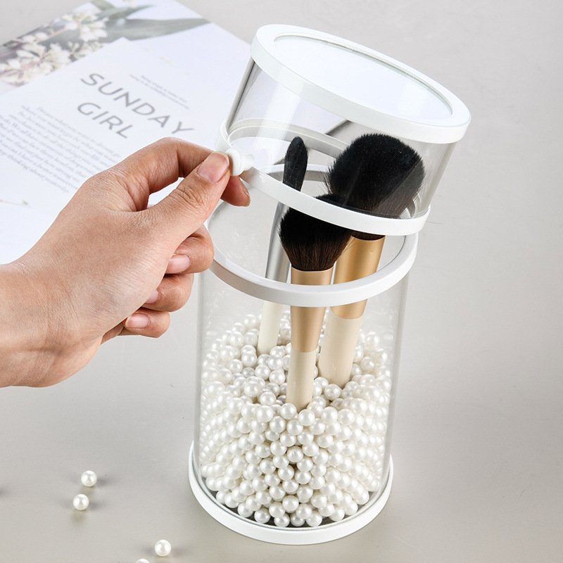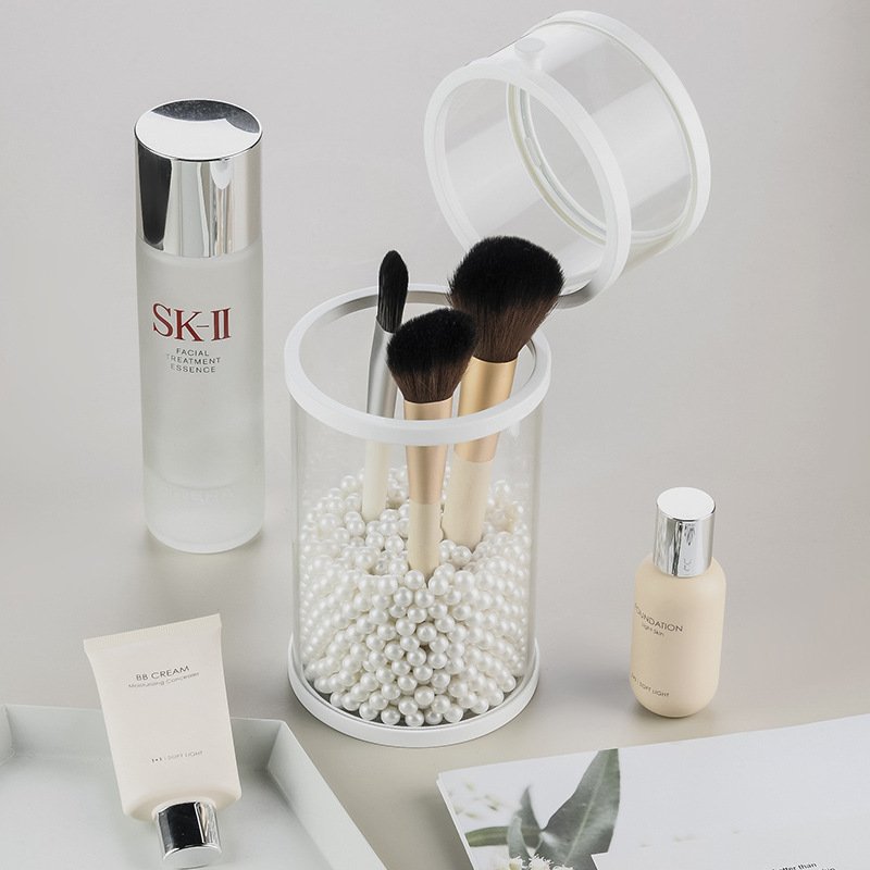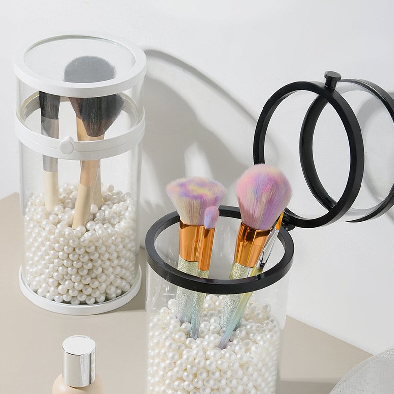 High-Gloss Round Makeup Brush Organizer with Lid – Dustproof Glass Cosmetic Holder with Plastic Edges for Lipsticks, Eyebrow Pencils, and Brushes