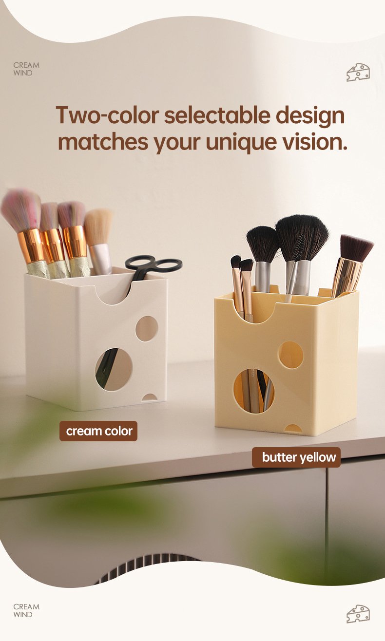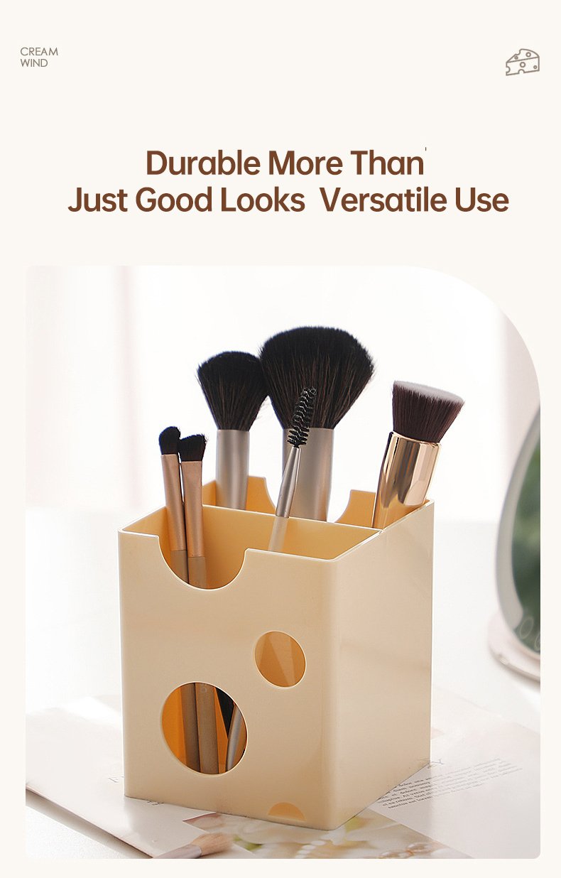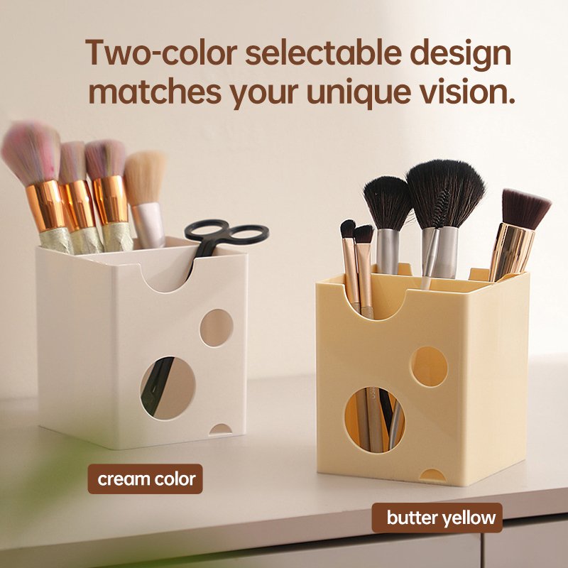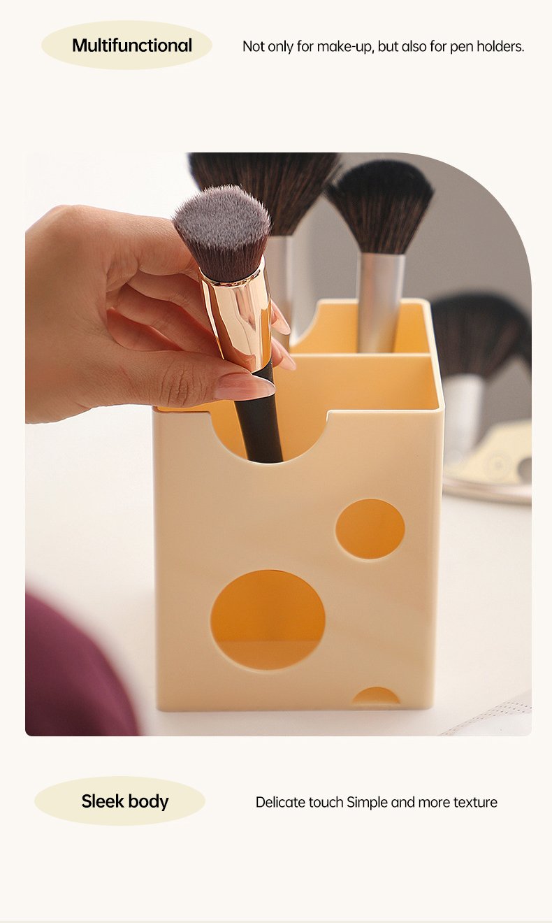 Minimalist Cheese-Style Makeup Brush Organizer, Vanity Cosmetic Storage Box for Lipsticks, Eyeshadows, and Eyebrow Pencils, Desktop Organizer