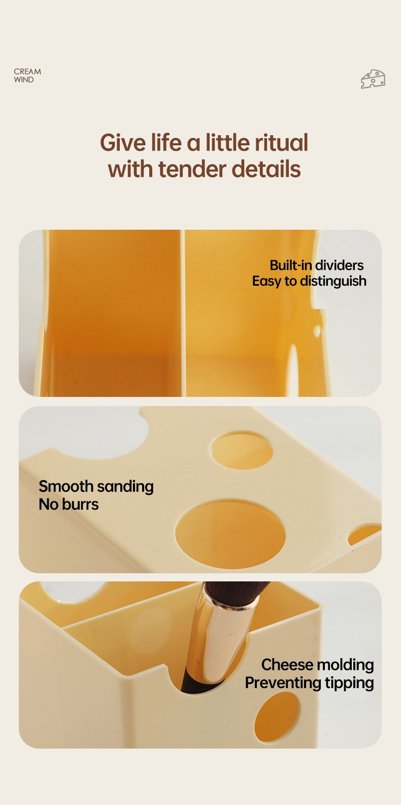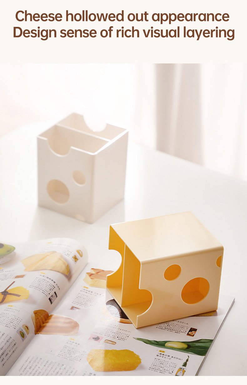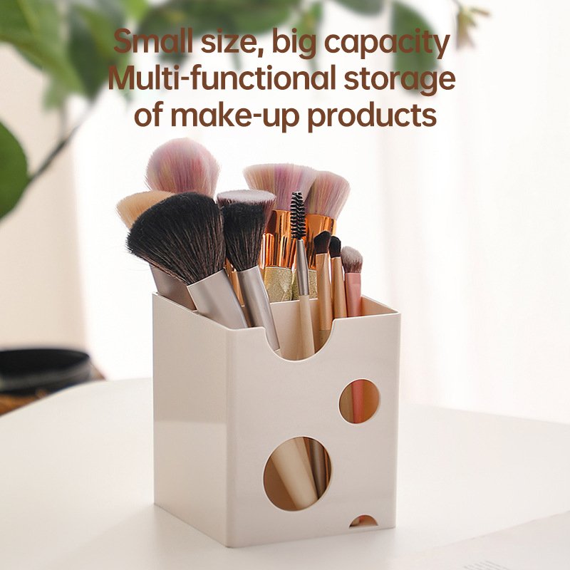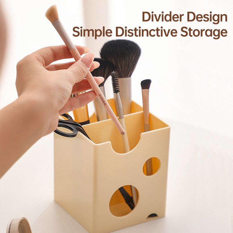 Minimalist Cheese-Style Makeup Brush Organizer, Vanity Cosmetic Storage Box for Lipsticks, Eyeshadows, and Eyebrow Pencils, Desktop Organizer