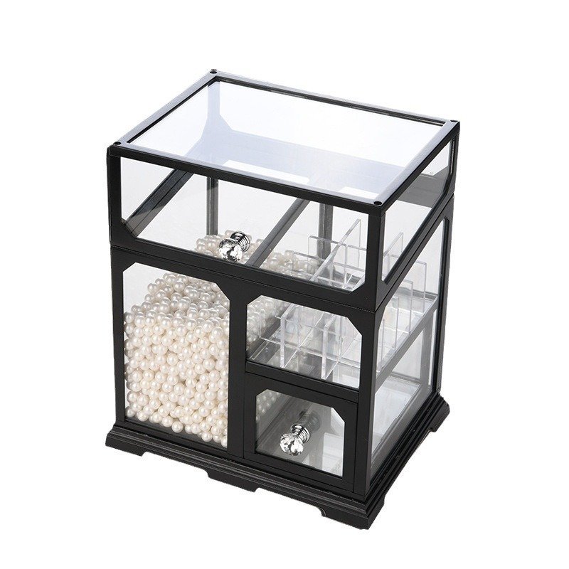 Wholesale Multi-Functional Makeup Organizer with Glass Flip Lid, Drawer Storage for Lipstick, Skincare, Jewelry & Brush Holder